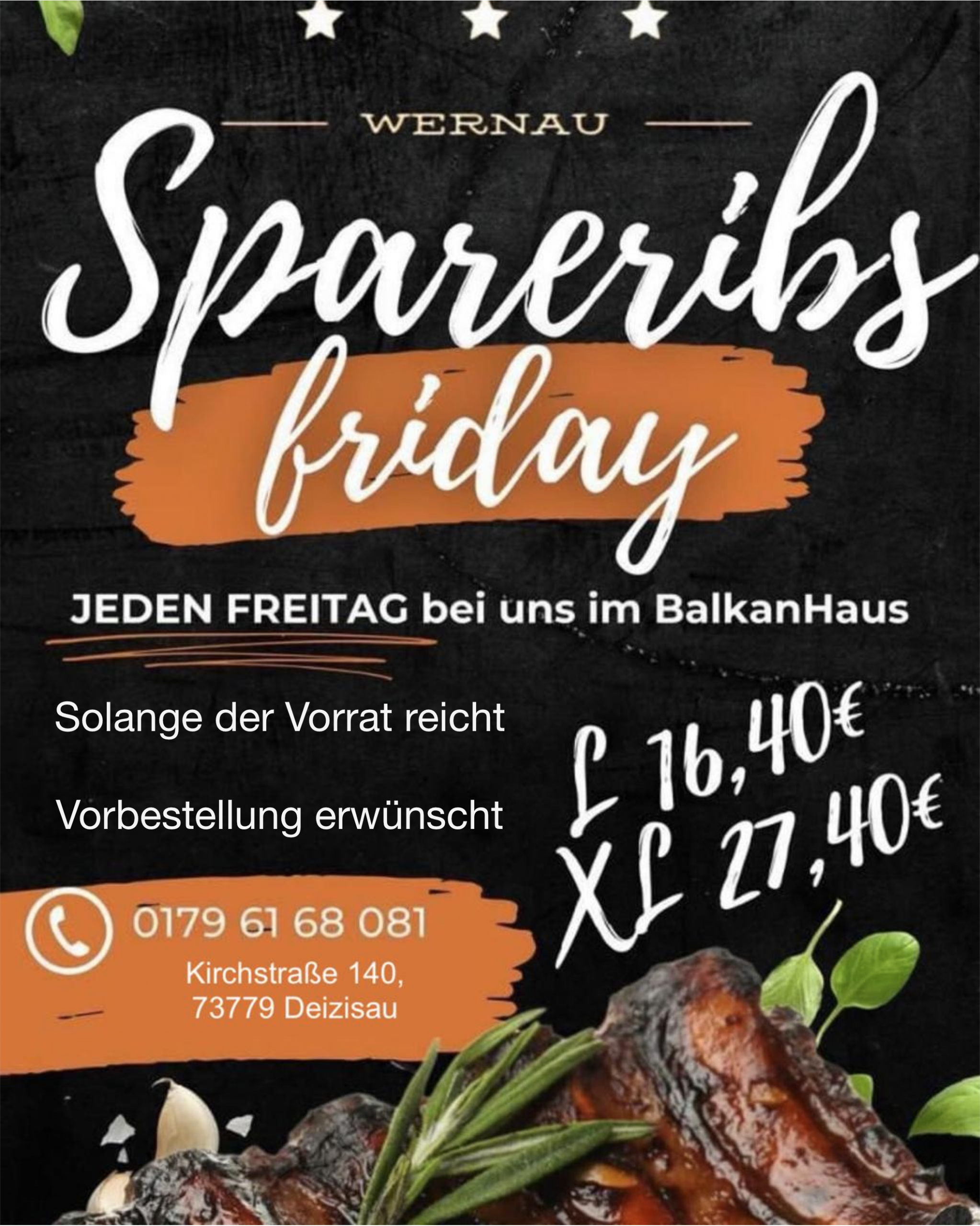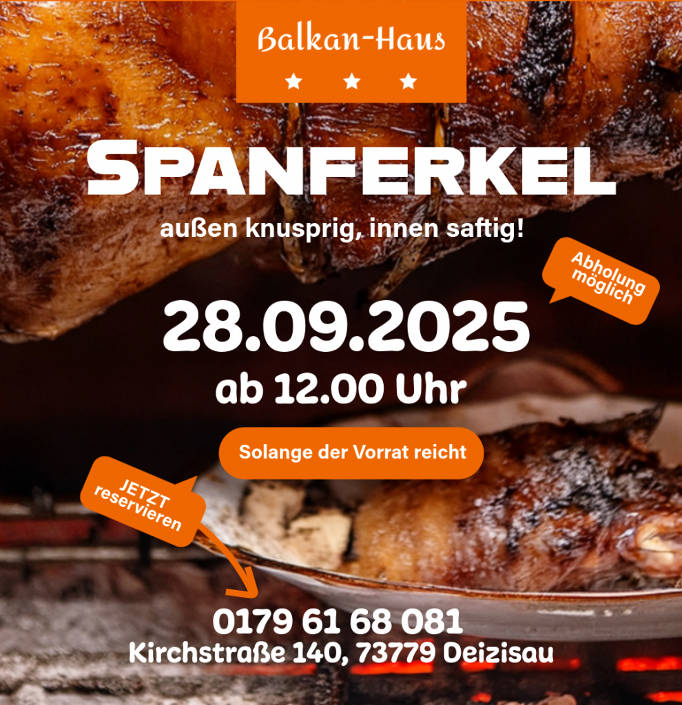 PS : Das Kilo Spanferkel gibt es ohne Beilagen für 37,40 € – ideal für die ganze Familie!